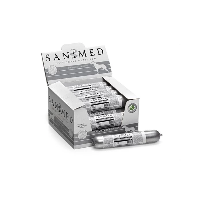 SANIMED Clinical Choice Pure Duck peut ĂŞtre utilisĂ© comme rĂ©gime d’Ă©limination pour dĂ©terminer si votre chien est hypersensible ou intolĂ©rant Ă certains composants alimentaires. Il s’agit d’un aliment complet pour chiens destinĂ© Ă rĂ©duire les hypersensibilitĂ©s et les intolĂ©rances alimentaires. Il aide Ă rĂ©duire une rĂ©action indĂ©sirable Ă la nourriture, grâce Ă une seule source de protĂ©ines animales (canard) et Ă des sources de protĂ©ines vĂ©gĂ©tales hypoallergĂ©niques. L’estomac et les intestins sont Ă©galement soulagĂ©s par l’utilisation de protĂ©ines et d’amidon faciles Ă digĂ©rer. La saucisse a une teneur en eau de seulement 63 %, par rapport aux aliments en conserve dont le taux d’humiditĂ© moyen est de 80 %.