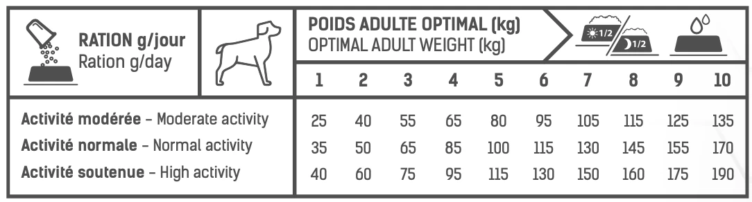 - Tonivet Adulte Mini Stérilisé convient parfaitement pour les chiens jusque 10 kg de poids vif.