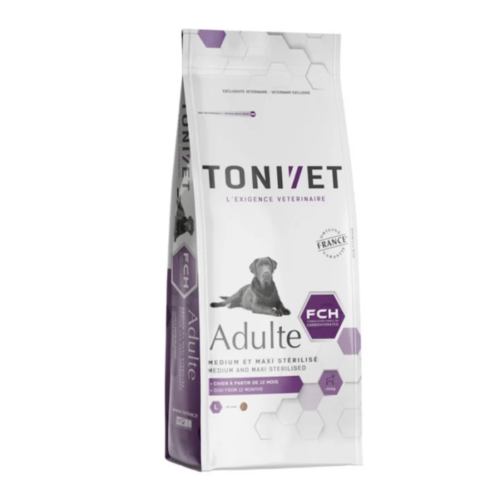 - Tonivet Adulte Medium et Maxi Stérilisé convient parfaitement pour les chiens à partir de 12 kg de poids vif.