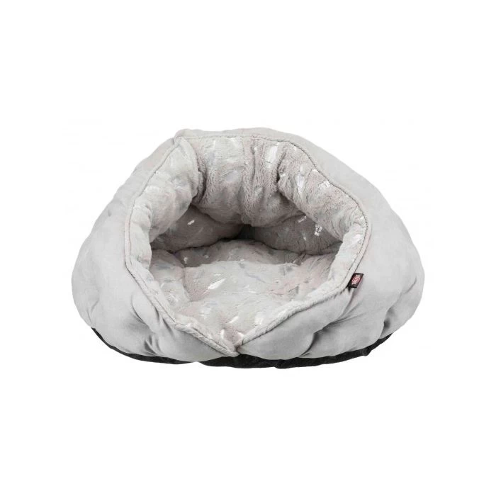 Cet abri douillet pour chien « Feather » de Trixie allie confort et élĂ©gance avec son impression de plumes argentĂ©es ! Le remplissage en fibres polyester et son aspect suĂ©dine assurera le confort de votre boule de poils lorsqu’il se souhaitera se reposer.Â