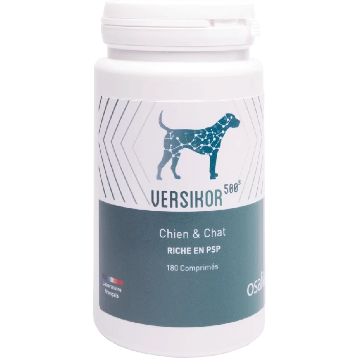 VERSIKOR500® est un aliment complémentaire destiné aux chiens et chats riche en PSP (38% polysaccharides, 11.5% peptides), un polysaccharopeptide extrait du mycelium de la souche Cov-1 de Coriolus versicolor. Il permet une stimulation de l’immunité par phytothérapie.